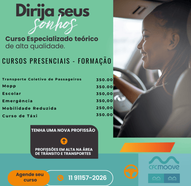 Oferecemos cursos para motoristas iniciantes e formação de profissionais na área de trânsito e transportes.